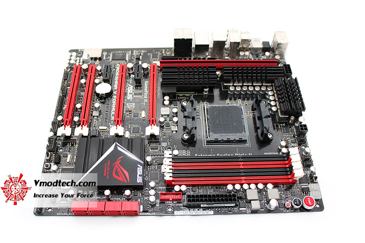 ตัวเมนบอร์ดสีดำสนิทสลับซิงค์สีดำแดง ไม่ต่างจากรุ่นก่อนหน้านี้ครับ ดุดันสวยงามตามแบบฉบับ ASUS ครับ