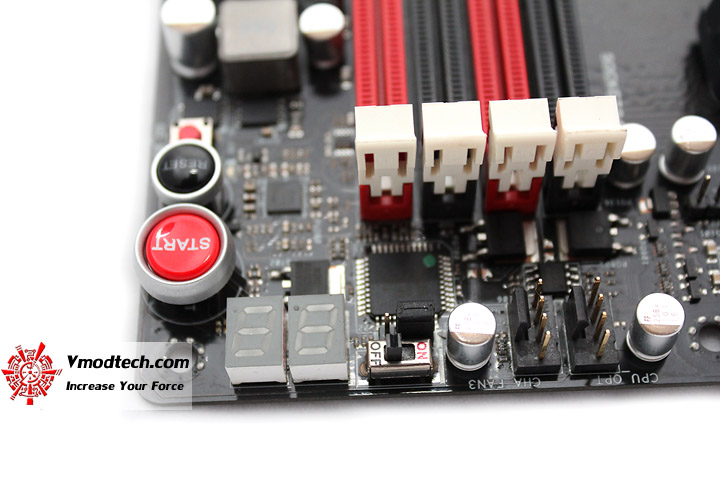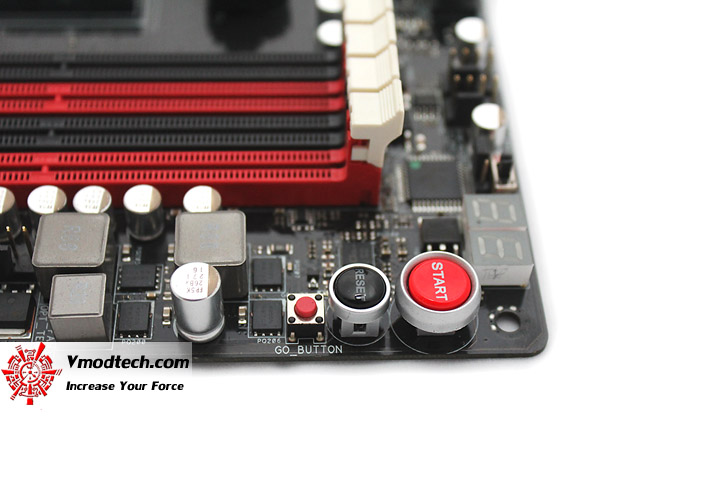 ปุ่ม START และปุ่ม Reset สำหรับขาโอเวอร์คล๊อกที่ยากจนไม่มีเงินซื้อเคสใส่กันน่ะครับออกแบบมาให้เรียบร้อย เง้อ…ผมพูดเล่นออกแบบมาให้ง่ายต่อการใช้งานเวลาโอเวอร์คล๊อกครับแจ่มไปเลยครับ และด้านข้างๆปุ่มเล็กๆ Go Button คือปุ่มที่ใช้กดในกรณีที่บูตแรมไม่ผ่านลากกันเกินไปบูตไม่ติดก็สามารถกดปุ่มนี้ให้แรมอยู่ในค่าเดิมทำให้บูตเข้าไบออสได้ครับผม