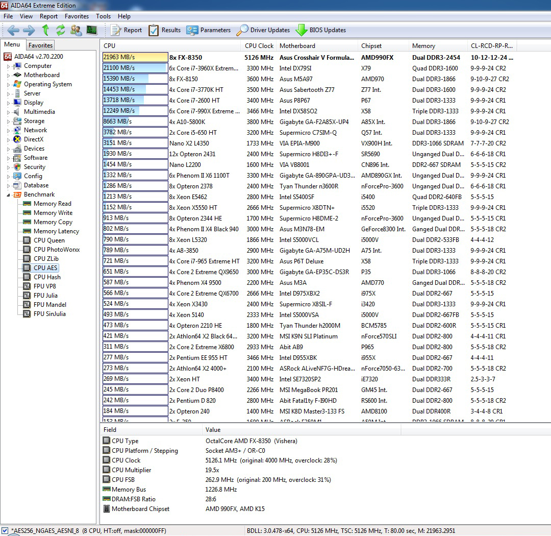 แรงกันไปครับกับ AIDA64 ในความเร็ว 5.126Ghz ที่เกือบจะหัวแถวทุกการทดสอบ