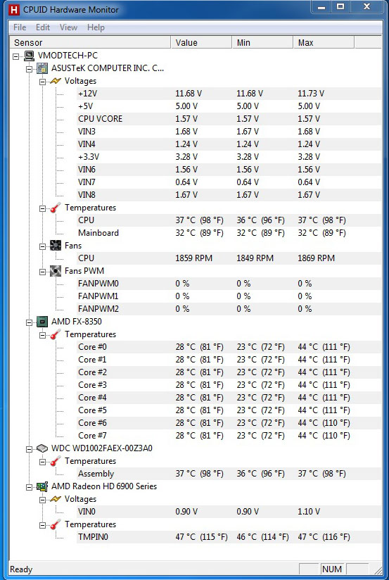 Hardware Mornitor แสดงผลค่าไฟต่างๆและอุณหภูมิครับ