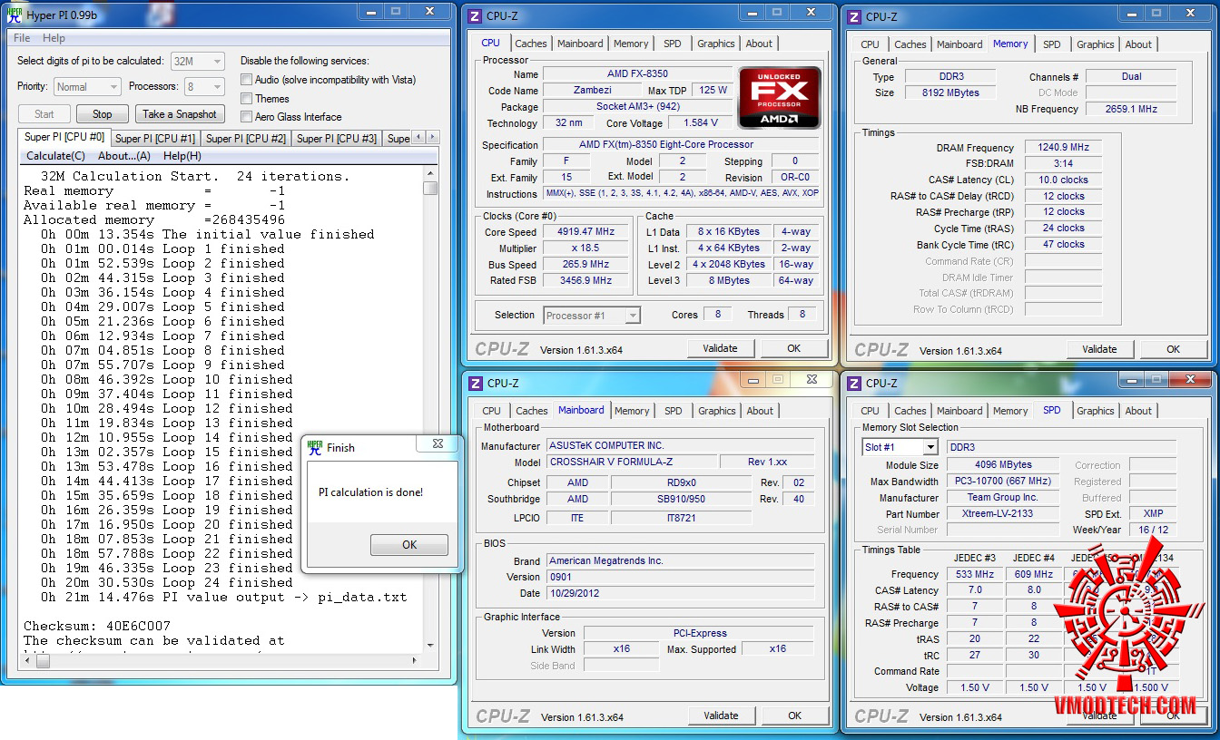 ผ่านไปครับสำหรับชุดทดสอบ SuperPI /HyperPI ทั้ง 1หัวแบบเกรียนๆ และรัน8หัวแบบมีสเถียรภาพใช้งานกันได้จริง สมกับเป็นเมนบอร์ดตัวแรงของทาง ASUS จริงๆครับที่สามารถใช้งานในความเร็วสูงๆได้อย่างมีสเถียรภาพ