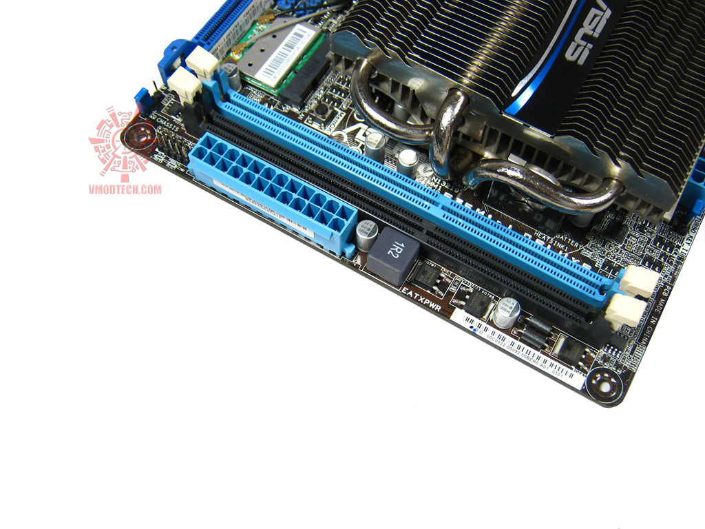 หันมาดูตัวเมนบอร์ดฯ กันดีกว่า Asus E35M1-I Deluxe กว้าง x ยาว คือ 6.7 นิ้ว x 6.7 นิ้ว รูปทรงเป็นสี่เหลี่ยมจตุรัสพอดิบพอดี ดูแล้วเป็นรูปแบบ Mini ITX Form Factor ครับ…บนตัวเมนบอร์ดฯ ได้ฝังชิป CPU AMD Dual-Core E-350 พร้อมกับชิปกราฟฟิค AMD Radeon HD6310 Graphics ซึ่งรูปแบบเมนบอร์ดฯ ที่มีฟีเจอร์ลักษณะนี้เราเรียกกันว่า APU (Accelerated Processing Unit) บนตัวเมนบอร์ดฯ มี Fanless Design Heatsink ขนาดเขื่องกินพื้นที่เกือบ 50% ของตัวเมนบอร์ดฯ แปะตรายี่ห้อ Asus มาให้อย่างสวยสดงดงาม รับรองได้ว่าเปิดระบบแล้วเสียงเงียบกริบอย่างแน่นอน 555+
