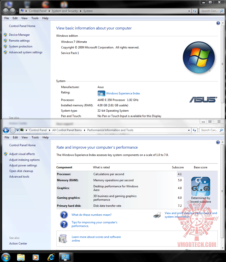 CPUZ, Windows7 Rating and AIDA64 INFO.