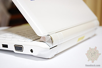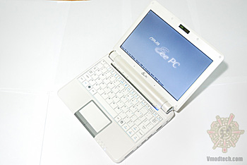 แง้มฝาออกมาดู ก็จะพบกับคีย์บอร์ดสีขาว สวยงาม เลย์เอท์คีย์บอร์ด ก็อัดกันแน่นสไตล์ Netbook ครับ โดยเฉพาะในบริเวณปุ่ม ,./ ก็จะเห็นว่าอัดกันจนแน่นเป็นพิเศษ จอขนาด 8.9 นิ้วที่ดูไม่ใหญ่ แต่สามารถใช้งานทั่วไปได้ แต่ถ้าใช้นานๆ ก็คงจะมีอารมณ์อึดอัดอยู่บ้างครับ