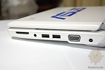 พอร์ตเชื่อมต่อด้านข้าง ก็ดูเหมือน Netbook ธรรมดาทั่วๆไปครับ มี Lan มาให้ มี USB มาให้ Audio In/out และ VGA port มาให้ตามมาตรฐานครับ