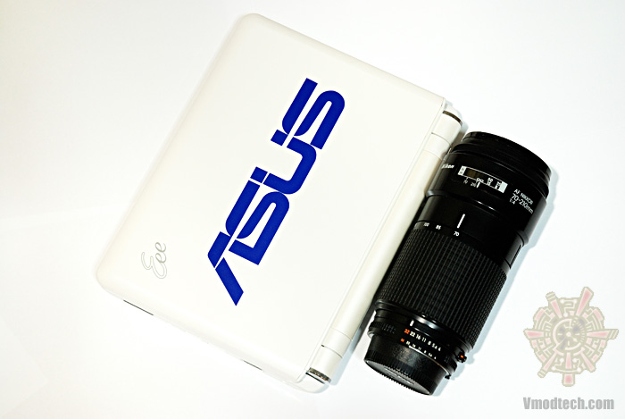 รูปซ้าย เทียบขนาดกับเลนซ์ผมครับ หุหุ เล็กสะใจดีจริงๆครับ … ส่วนไส้ใน เปิดออกมา พบว่ามันโล่งโจ้งดีครับ มีการ์ด Wireless เสียบอยู่ และ Harddisk แบบ Solid (ด้านซ้ายมือ) จาก Phison และ เมมโมรีแบบ DDR2 1024mb ครับ (อ้อ มีมาให้สลอตเดียวนะครับ หุหุ)