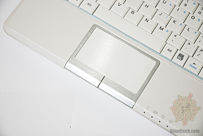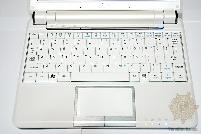 แง้มฝาออกมาดู ก็จะพบกับคีย์บอร์ดสีขาว สวยงาม เลย์เอท์คีย์บอร์ด ก็อัดกันแน่นสไตล์ Netbook ครับ โดยเฉพาะในบริเวณปุ่ม ,./ ก็จะเห็นว่าอัดกันจนแน่นเป็นพิเศษ จอขนาด 8.9 นิ้วที่ดูไม่ใหญ่ แต่สามารถใช้งานทั่วไปได้ แต่ถ้าใช้นานๆ ก็คงจะมีอารมณ์อึดอัดอยู่บ้างครับ