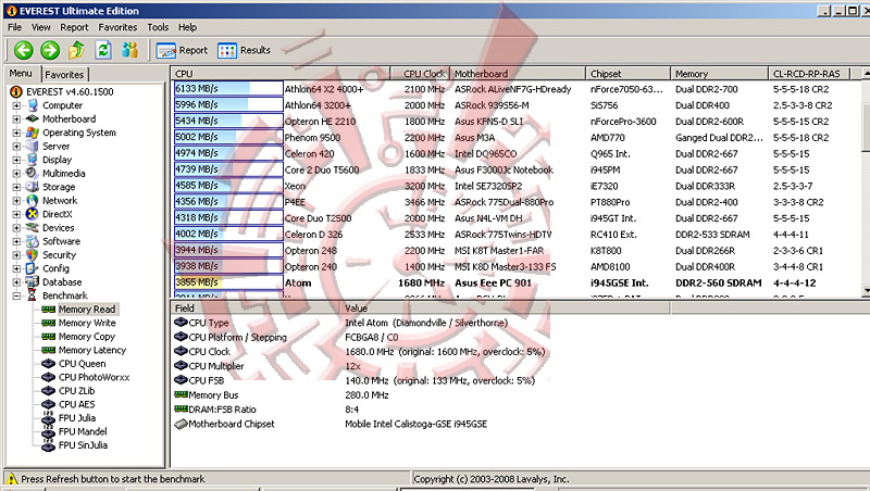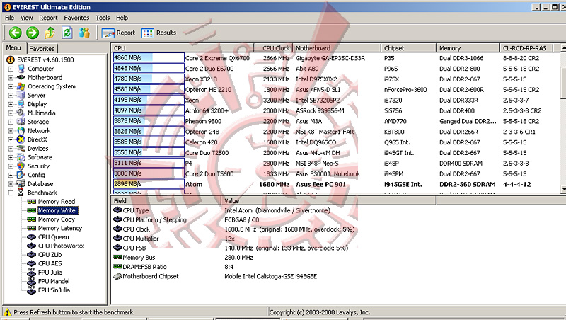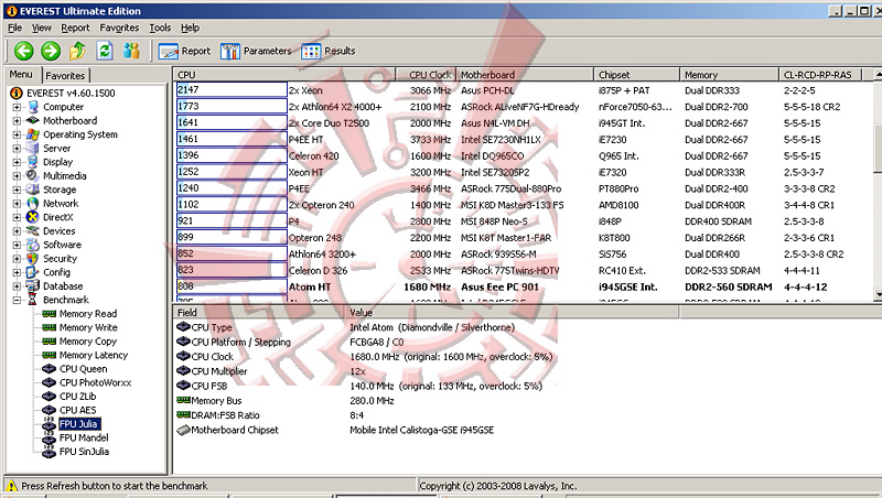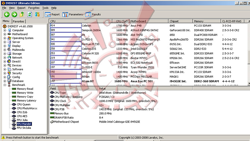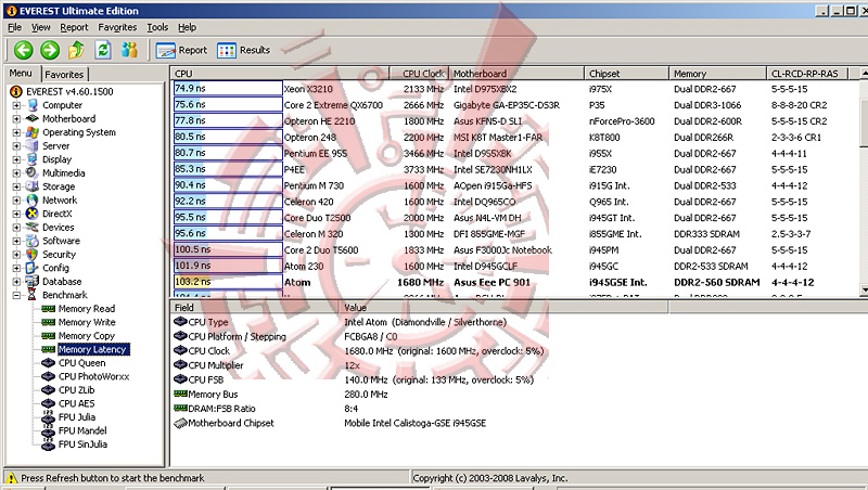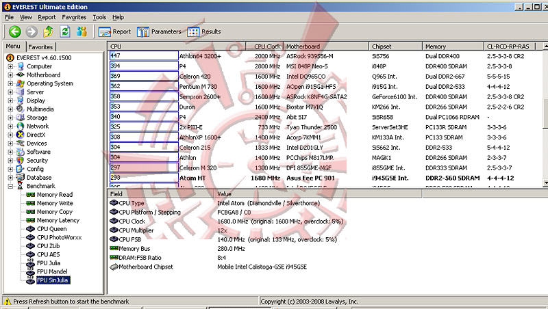 โปรแกรม Synthetic Benchmark ตัวนี้ สามารถบอกได้ละเอียด และดูง่ายกว่า Sisoft นิดหน่อยครับ แต่ไม่สามารถทดสอบหัวข้อจำพวก HDD หรือดู ความสามารถในการคำณวนของซีพียูเป็น mFLOPS ได้