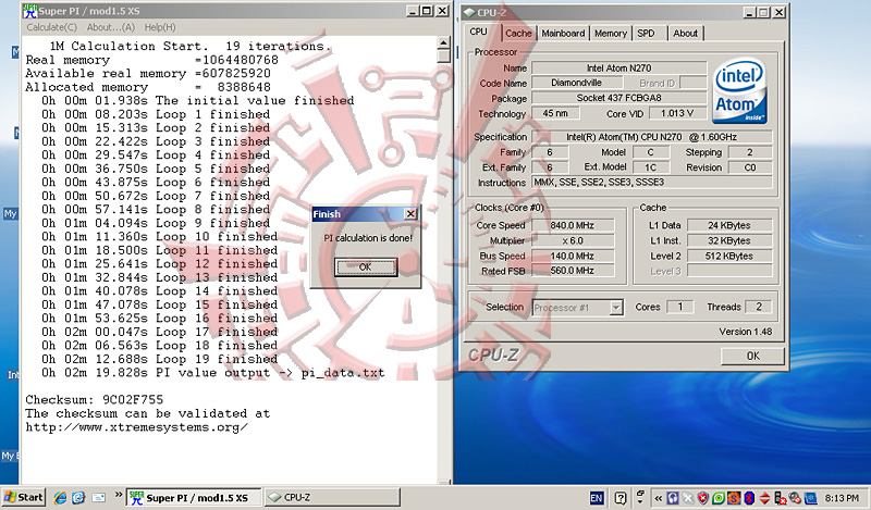 Super PI1mb กินเวลาไปนานถึง 2 นาทีกับอีก 19 วิ ใช้เวลาประมาณนี้ เหมือนเป็นเรื่องปกติของคอมพิวเตอร์ยุค Pentium 4 รุ่นแรกๆ พวก 1.6 1.8 ghz เลยครับ