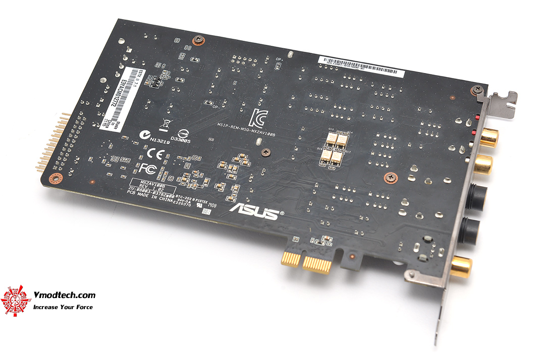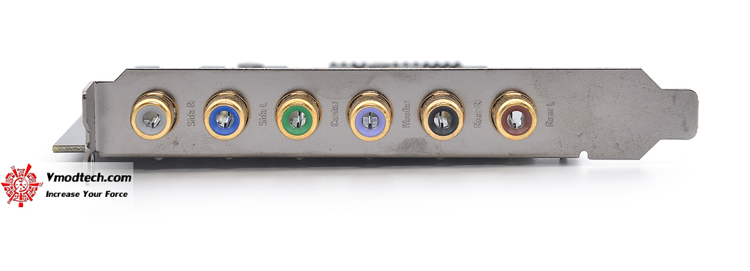 จากซ้ายไปขวา RCA ต่อออกหน้าขวา/ซ้าย ช่องต่อ Headphone ช่องต่อ Line in และขวาสุดจะเป็น SPDIF out ซึ่งจะต่อออกแบบโคแอคหรือ fiber ก็ได้