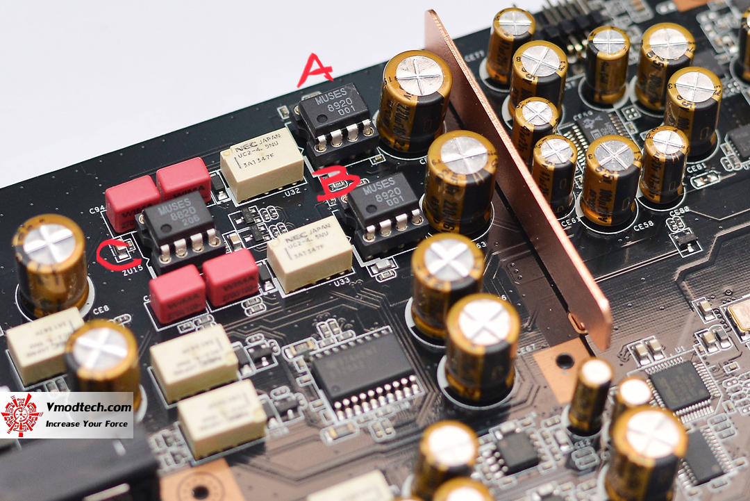 ตรงที่ผมมาร์ค A, B, C ไว้คือบริเวณที่สามารถเปลี่ยน OP amp ได้นะครับ A กับ B นั้นเป็น convertor สำหรับ Output channel ขวาและซ้ายจะมีผลต่อทั้ง RCA Output และ Headphone output ส่วน C นั้นจะเป็น Lowpass filter ซึ่งจะมีผลเฉพาะกับ RCA Output เท่านั้น