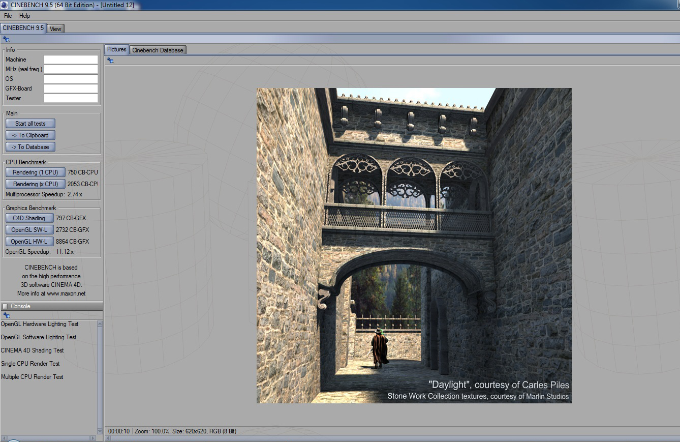 แรงกันไปครับกับ Cinebench 9.5 คะแนนเรนเดอร์ซีพียูอยู่ที่ 2053 คะแนน