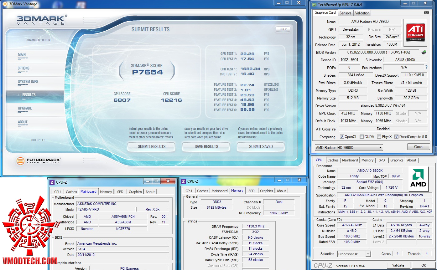 การ์ดจอที่มากับซีพียู AMD A10-5800K ในวันนี้ในรูปแบบของการฟิวชั่น APU HD7660D โอเวอร์คล๊อกเพิ่มความแรงไปที่ Core1013