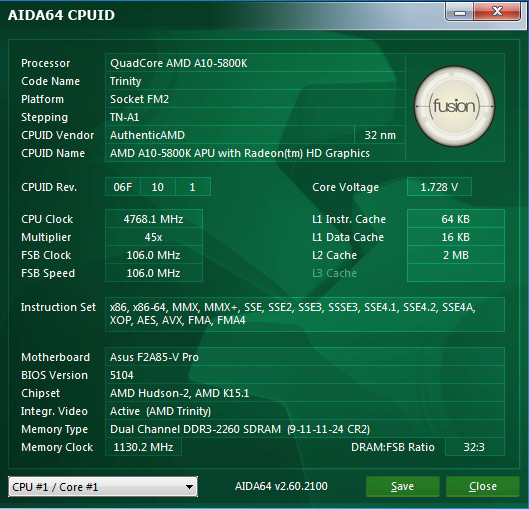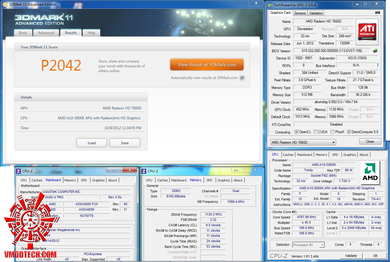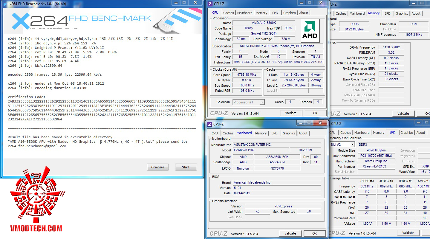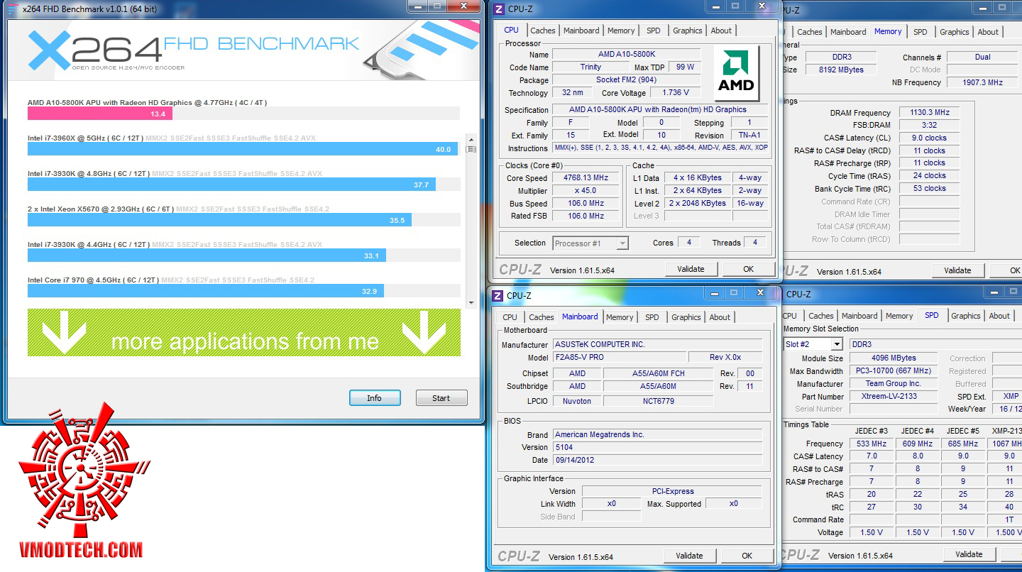 รายละเอียดความเร็วซีพียู A10-5800K ที่ใช้ทดสอบกันในวันนี้ครับ จับวิ่งที่ 4.67Ghz 106X45 บัสแรมอยู่ที่ 2230Mhz NB Frequency 1900Mhz จัดไปสูงๆกันเหมือนเช่นเคยไม่เอาเปรียบท่านผู้ชมครับ เง้อ… ตามประสิทธิภาพของเมนบอร์ดที่สามารถนำพาซีพียูไปได้อย่างมีสเถียรภาพครับ