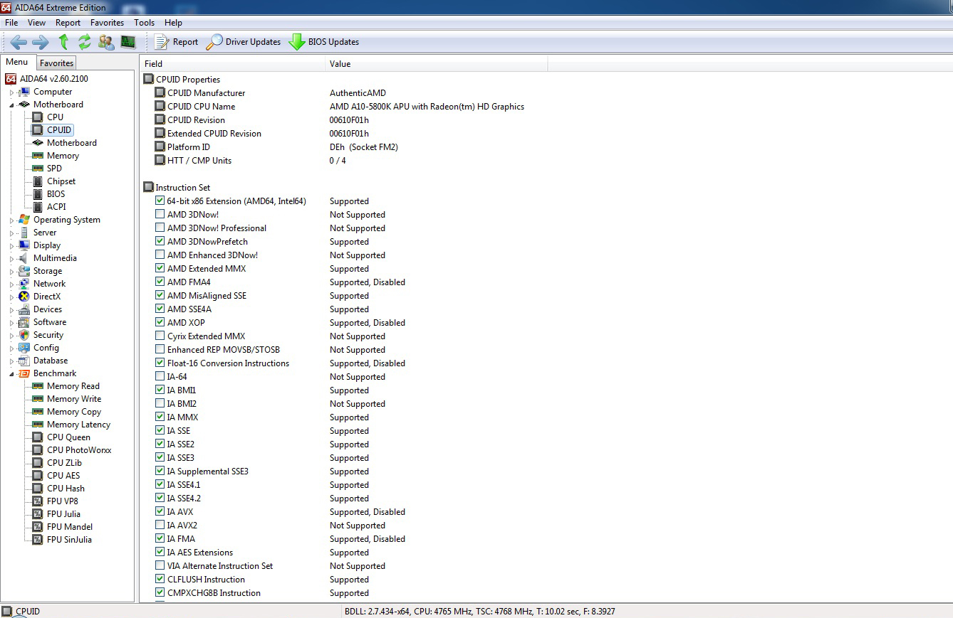 AIDA64 แสดงรายละเอียดค่าต่างๆของซีพียูและเมนบอร์ด