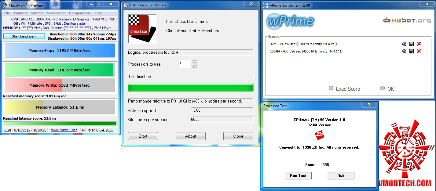 wPrime2.09 , CPUMark99 MaxxMem & Fritz Chess Benchmark