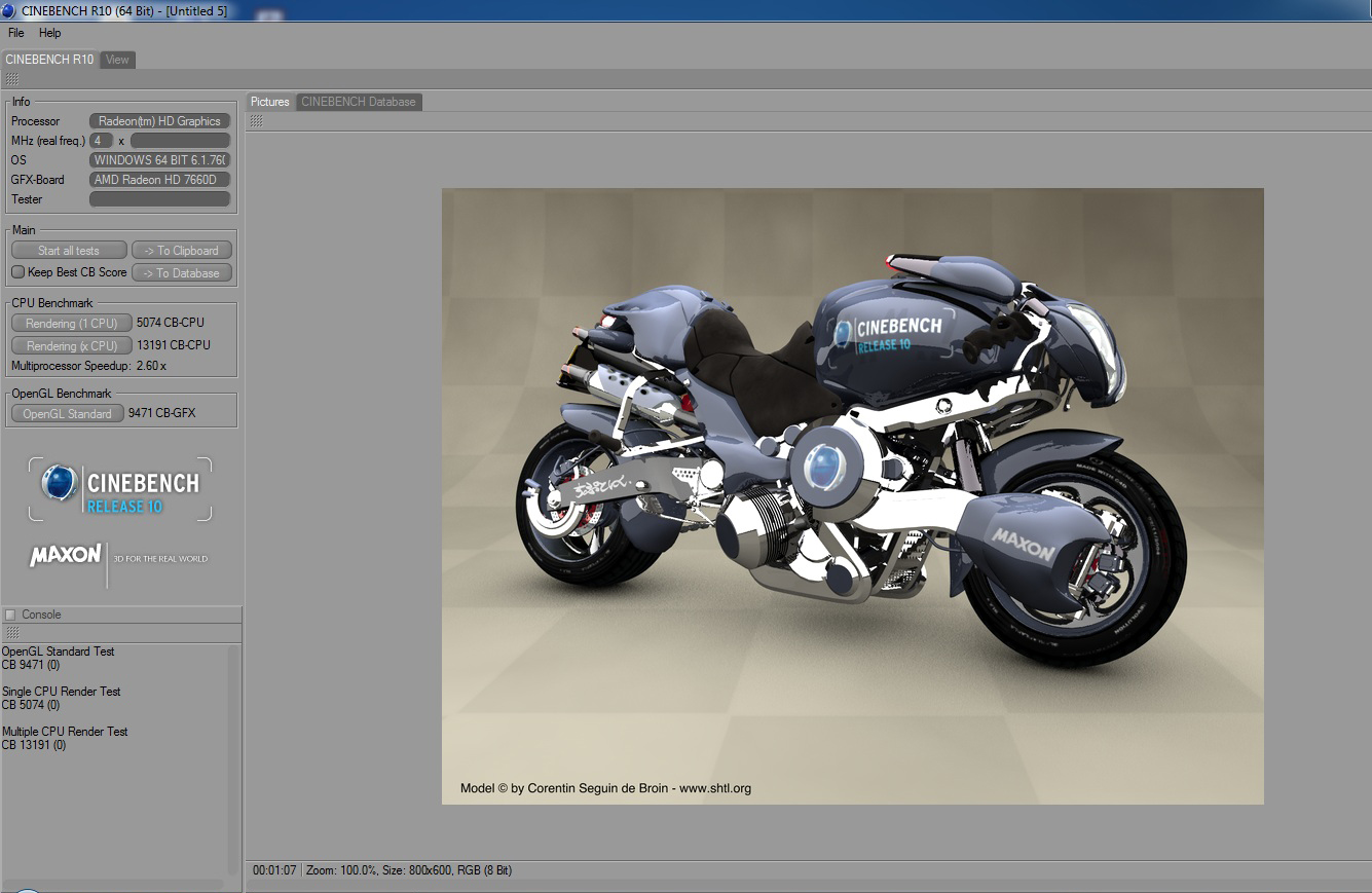 Cinebench 10 คะแนนเรนเดอร์ทั้ง4หัว 13191 ถือว่าแรงดีอยู่นะครับกับซีพียูที่มีการ์ดจอใช้งานอยู่ภายในตัวเอง