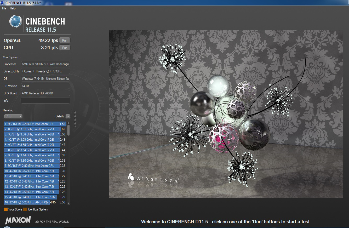 Cinebench 11.5 โอ้ คะแนนเรนเดอร์กราฟฟิกใช้ได้ดีเลยครับ ผมทดสอบดูลื่นครับไม่มีสะดุด เรนเดอร์สบายๆเลยครับงาน 3D