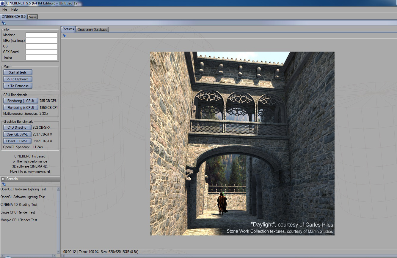 Cinebench 9.5 ก็แรงตามประสิทธิภาพครับ ไม่มีอาการสะดุดเลยครับในการทดสอบด้าน 2D 3D หรืองานเรนเดอร์ต่างๆ