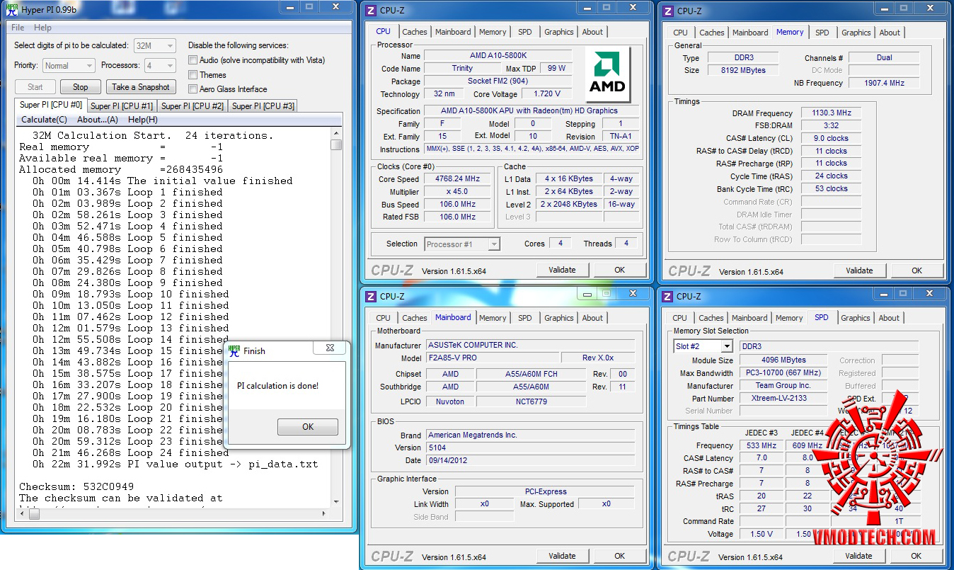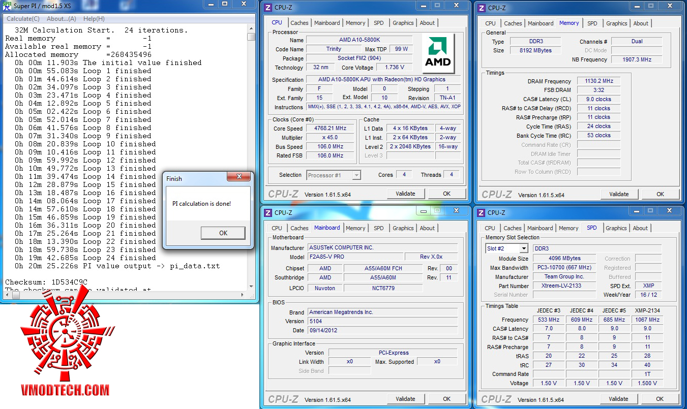 SuperPI 1MB 1Threads ความเร็วอยู่ที่ 21.153วินาทีครับ ที่ความเร็วซีพียู 4.76Ghz ก็ตามประสิทธิภาพของ APU ครับผม