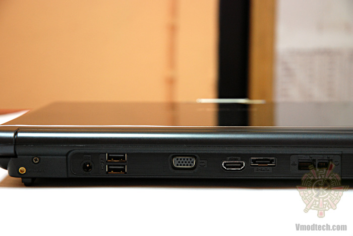ส่วนพอร์ตด้านหลัง (รูปซ้ายมือ) ก็จะมี USB ให้อีกสองช่อง แถมยังมี VGA out คู่กับพอร์ต HDMI แถมให้ eSATA อีกเอ้า (ครบสูตรจริงๆครับ) และด้านขวามือก็มี USB มาให้อีกสองพอร์ตด้วยกันครับ