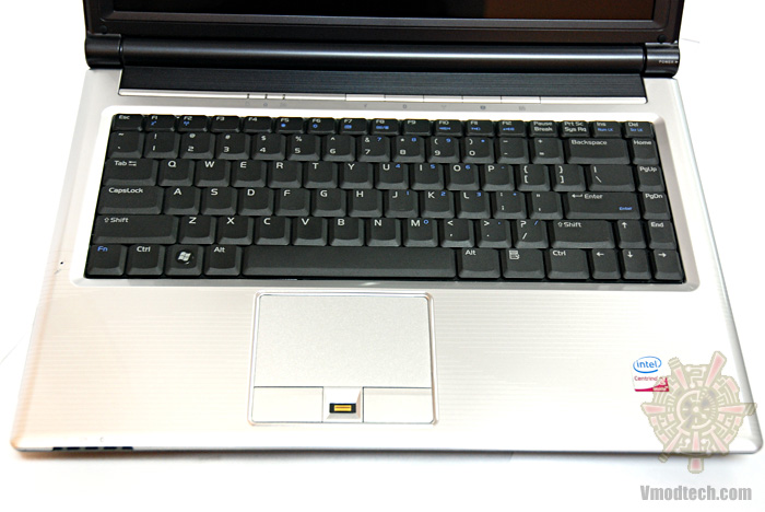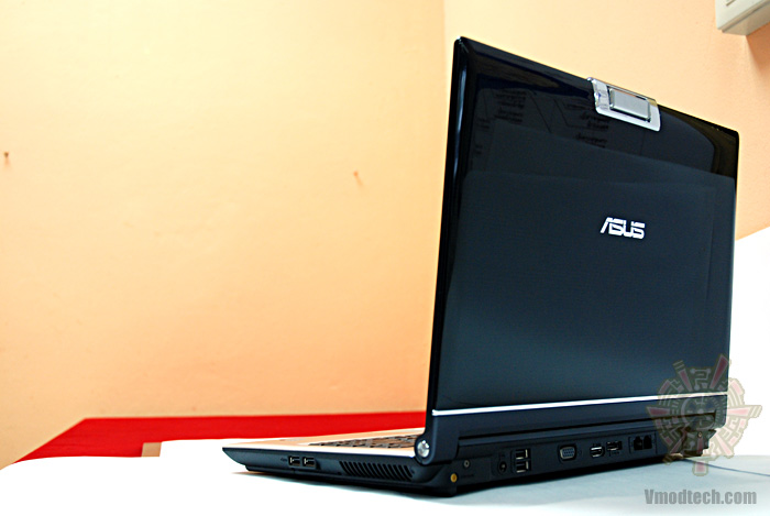 ตัวถังของเจ้า Asus F8VR นั้น ทำมาจากพลาสติกครับ แต่ไม่ใช่พลาสติกเกรดกะหล่งก๊งแต่อย่างไร มีความเงางาม แต่ก็เปื้อนเป็นรอยนิ้วมือได้ง่าย และหากสังเกตดีๆ เจ้าตัวรุ่นสีดำนี่ จะมีลายเส้นสีขาวๆ พาดอยู่เป็นระยะๆ บนฝาด้วยนะครับ (ลองคลิกดูรูปใหญ่)