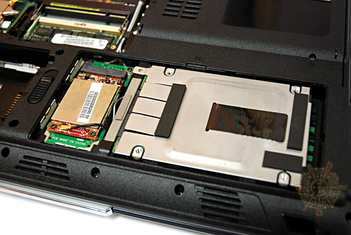 สำหรับฮาร์ดดิสก์ ภายในโน๊ตบุ๊กตัวนี้ ก็มีการปิดฝามาอย่างดีครับ มีฟองน้ำกันกระแทกอยู่ 4 ชิ้น ดังรูปด้านขวามือ ฮาร์ดดิสก์ที่เลือกใช้เป็น Hitachi SATA 250gb 5400rpm ครับ