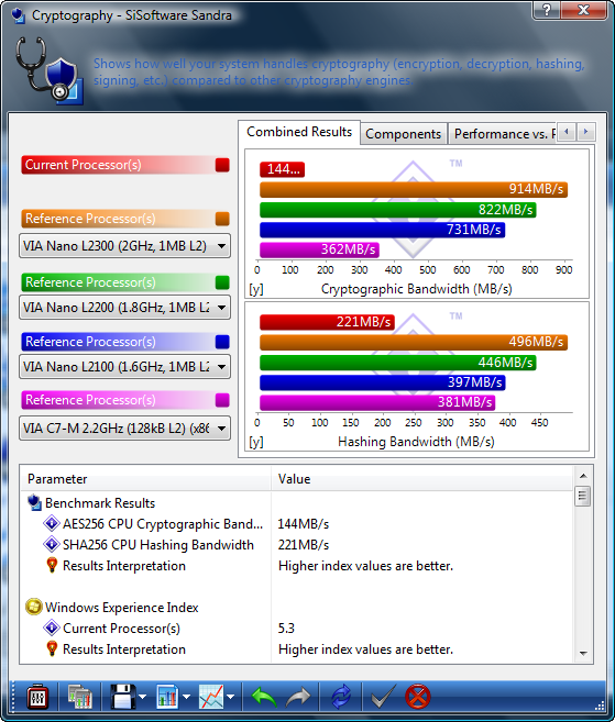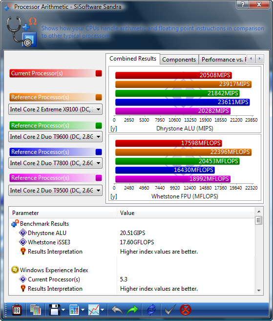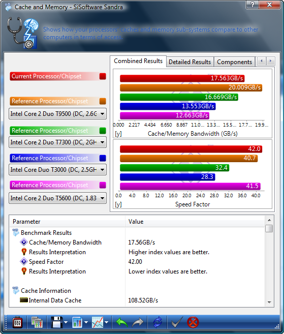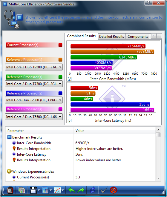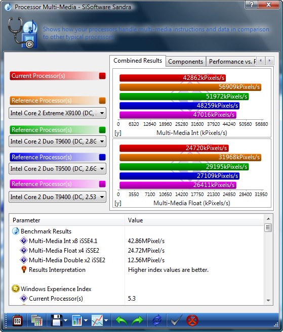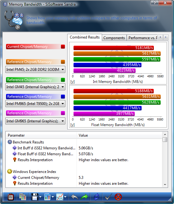 เมื่อดูคะแนนแล้วก็อยู่ในมาตรฐานของซิสเต็มในชิปเซ็ต MP45 นะครับ และหากสังเกตอีก ก็จะพบว่า Memory Bandwidth นั้นเพิ่มขึ้นจากชิป P965 mobile ตัวเก่าอย่างเห็นได้ชัดเจนเลยทีเดียวครับ ส่วนซีพียูนั้น ตัวนี้ยังไม่ใช่รุ่นใหญ่มากนักในตระกูล Penryn จึงยังไม่เห็นผลชัดเจนนักเมื่อเทียบกับ Centrino เจนเนอเรชั่นเก่าๆครับ
