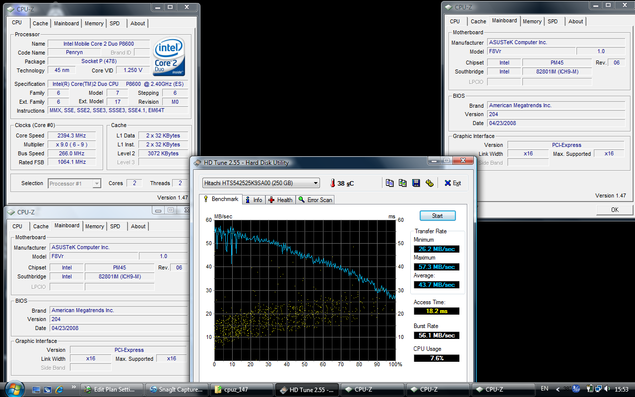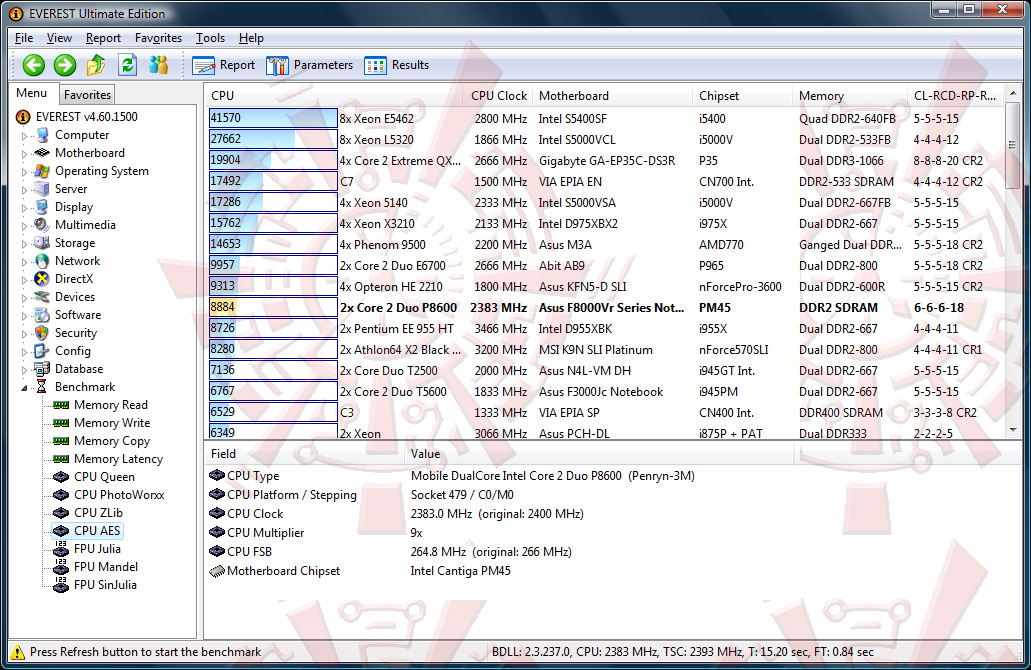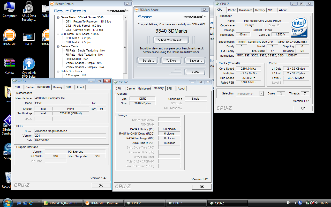สำหรับ Everest นั้น ผลก็ออกมาไปในแนวทางเดียวกันกับ Sisoft ครับ แต่จะไม่มีซิสเต็มแบบ Notebook ให้เทียบเป็น reference แต่ก็สามารถสังเกตได้ครับว่า ความแรงนี่ พอๆกับซีพียูเดสทอปตัวท๊อปรุ่นเก่าๆอย่าง E6700 เลยทีเดียวครับ สำหรับในส่วนนี้จะเป็นการทดสอบของโปรแกรมในตระกูล Future mark ประกอบไปด้วย 3Dmark 03 05 06 และ PCmark05 ที่ใช้วัดประสิทธิภาพการใช้งานทั่วไปในชีวิตประจำวันครับ คะแนนออกมาก็อยู่ในเกณฑ์มาตรฐานโน๊ตบุ๊กครับ กับการ์ดจอรุ่นเล็ก ซีพียูรุ่นกลาง อาจจะไม่จี้ดเหมือนเดสทอพแรงๆ แต่ถ้าเอาไปเล่นเกมจริงๆ ก็พอเสียวซ่านได้นะครับ หุหุ Other Benchmark อันนี้ภูมิใจเสนอมากครับ SuperPI 1mb 20วินาทีต้นๆ เทียบชั้นกับเดสทอปได้ไม่อยากเลยครับแบบนี้ คงจะเพราะได้อานิสงส์ FSB1066 และ DDR800 ด้วยครับ เสียดายว่าเป็น CL6 ถ้าได้สัก CL5 ล่ะอาจจะมีแรงกว่านี้ครับ หุหุ WinRAR ที่ดูน้อยๆ เพราะผลพวงจากแรม CL6 ครับ แต่ก็ถือว่าไม่ช้ามากนะครับ สำหรับโน๊ตบุ๊กระดับนี้ ใช้เวลาเรนเดอร์เพียงแค่ 31 วินาทีเท่านั้นครับท่านผู้ชม สำหรับ Cinebench10 ผมลองๆทดสอบดู เหมือน OPENGL Test อันอื่นจะมีปัญหากับวิสต้าและไดร์เวอร์ของผม เลยไม่ได้ทำการทดสอบมาให้ดูครับ กับ Burst Rate 56mb/s และ Seektime 18ns ก็ถือว่าไม่เลวครับ
