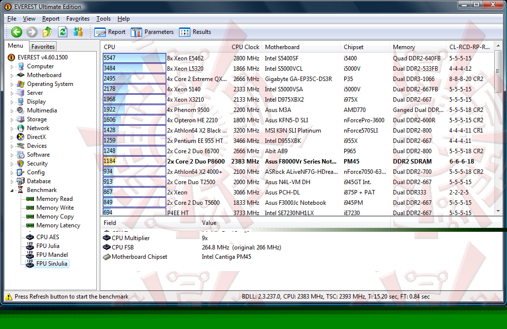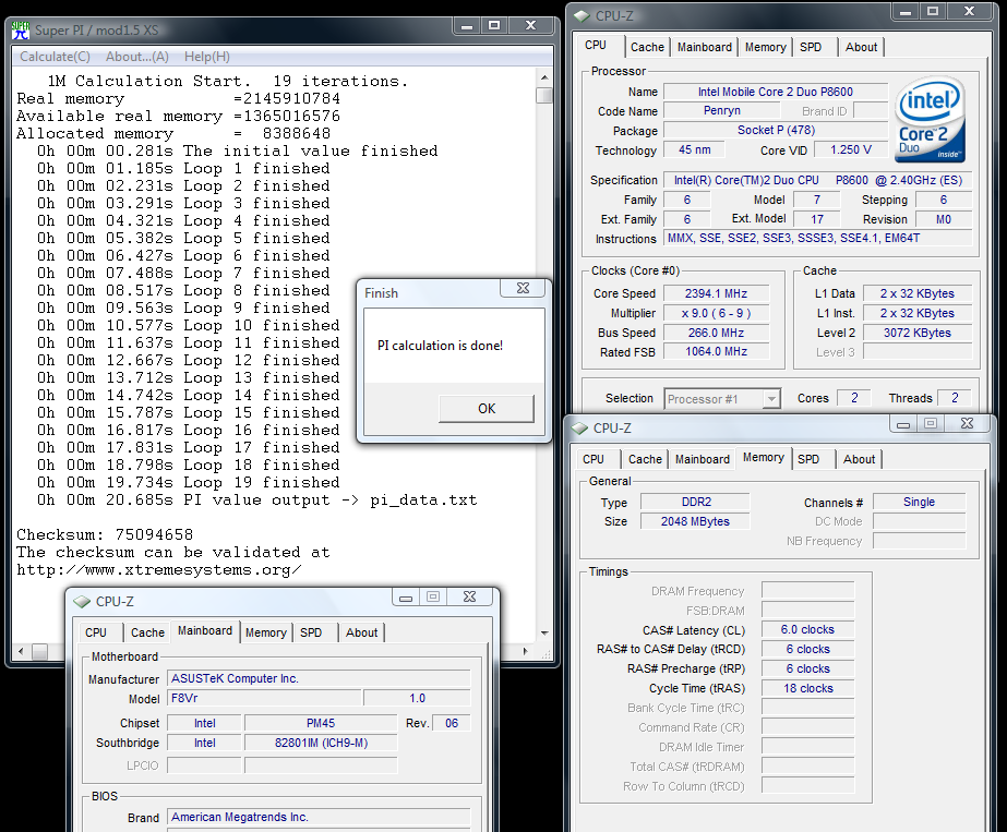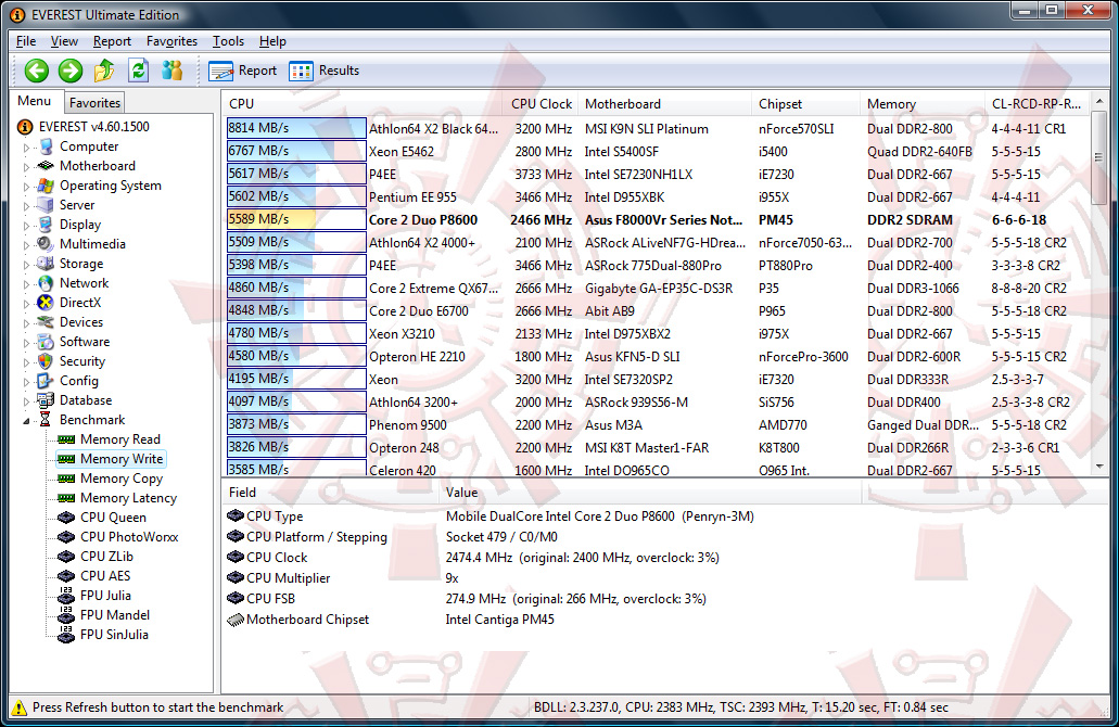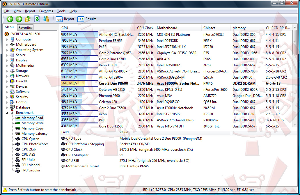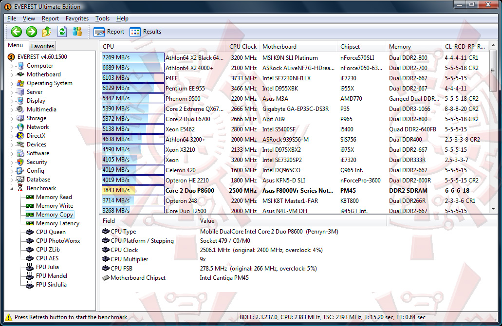 โปรแกรมนี้มีอะไรพิเศษนิดนึงครับ ตรงที่ในบางการทดสอบในส่วนของ Memory Read/Write/Copy นั้น จะมีการใช้ซีพียูเพียงแค่คอร์เดียว จะสังเกตได้ว่า โปรแกรมฟ้องว่ามีการ Overclock มา 3% สอดคล้องกับข้อมูลที่ผมได้รับแว่วๆมาจากท่าน Venom-Crusher ที่ไปแซะๆข้อมูลมาจากงาน press release ของ Intel Centrino 2 ว่าเจ้า Penryn ตัวใหม่เนี่ย จะมีการ OC ตัวเองขึ้นมา จากบัส 266 จะมาวิ่งแตะๆที่ 273-276mhz ครับ หากแอพพลิเคชั่นที่ท่านใช้ ไม่รองรับ Multi core เพื่อประสิทธิภาพสูงสุด (ขณะใช้งานเพียงแค่คอร์เดียวครับ)