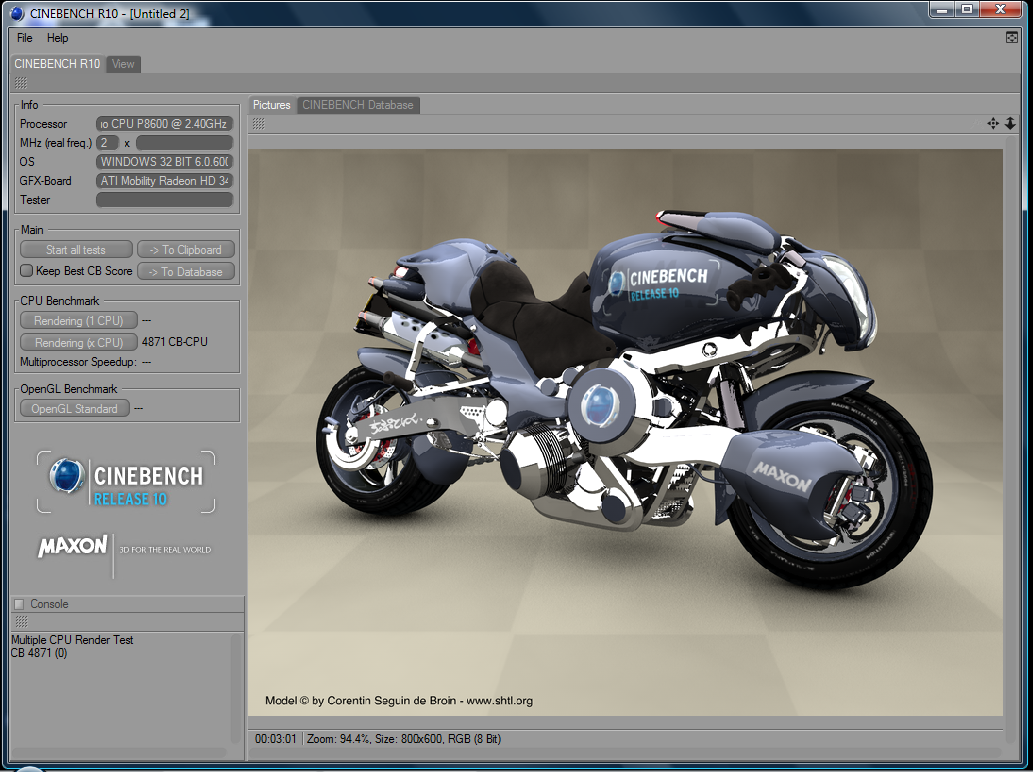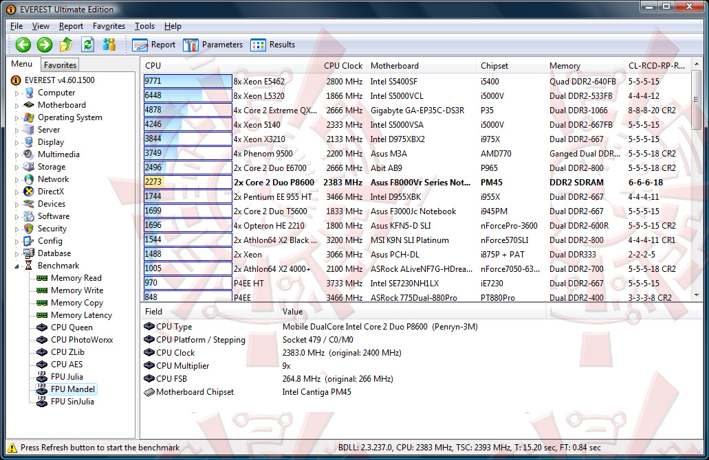 | CPU | Intel Mobile Core2 Duo P8600 “Penryn” (45nanometre) 2.4ghz FSB1066 3mb of L2 cache |