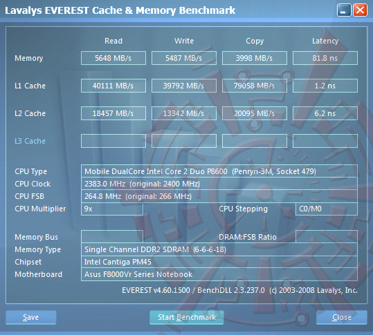 เมื่อดูคะแนนแล้วก็อยู่ในมาตรฐานของซิสเต็มในชิปเซ็ต MP45 นะครับ และหากสังเกตอีก ก็จะพบว่า Memory Bandwidth นั้นเพิ่มขึ้นจากชิป P965 mobile ตัวเก่าอย่างเห็นได้ชัดเจนเลยทีเดียวครับ ส่วนซีพียูนั้น ตัวนี้ยังไม่ใช่รุ่นใหญ่มากนักในตระกูล Penryn จึงยังไม่เห็นผลชัดเจนนักเมื่อเทียบกับ Centrino เจนเนอเรชั่นเก่าๆครับ