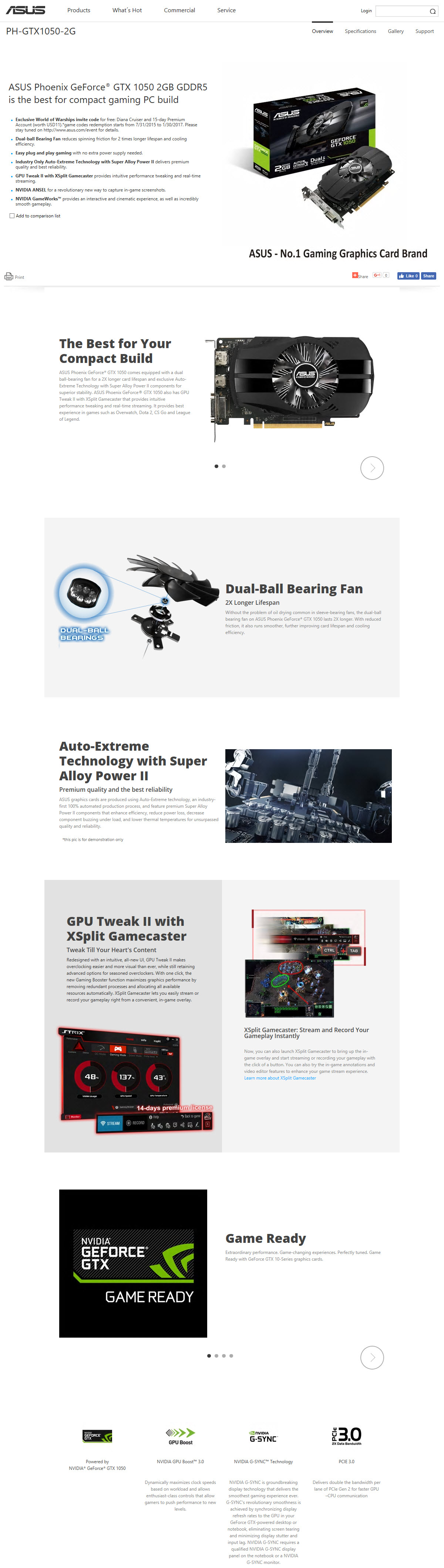 สวัสดีครับทุกๆท่านที่เยี่ยมชมเว็บไซต์ Vmodtech.com วันนี้มีกราฟฟิกการ์ดรุ่นประหยัดและยอดนิยมจากค่าย NVIDIA ซึ่งวันนี้เป็นแบรนด์ ASUS ครับ ASUS GeForce GTX 1050 2GB นั้นได้ถูกปรับเปลี่ยนชุดระบายความร้อนเป็นแบบพัดลมเดี่ยว และมีดีไซน์แบบง่ายๆเน้นราคาประหยัดให้ทุกคนสามารถเป็นเจ้าของได้ เรามาชมรายละเอียดกันก่อนครับ