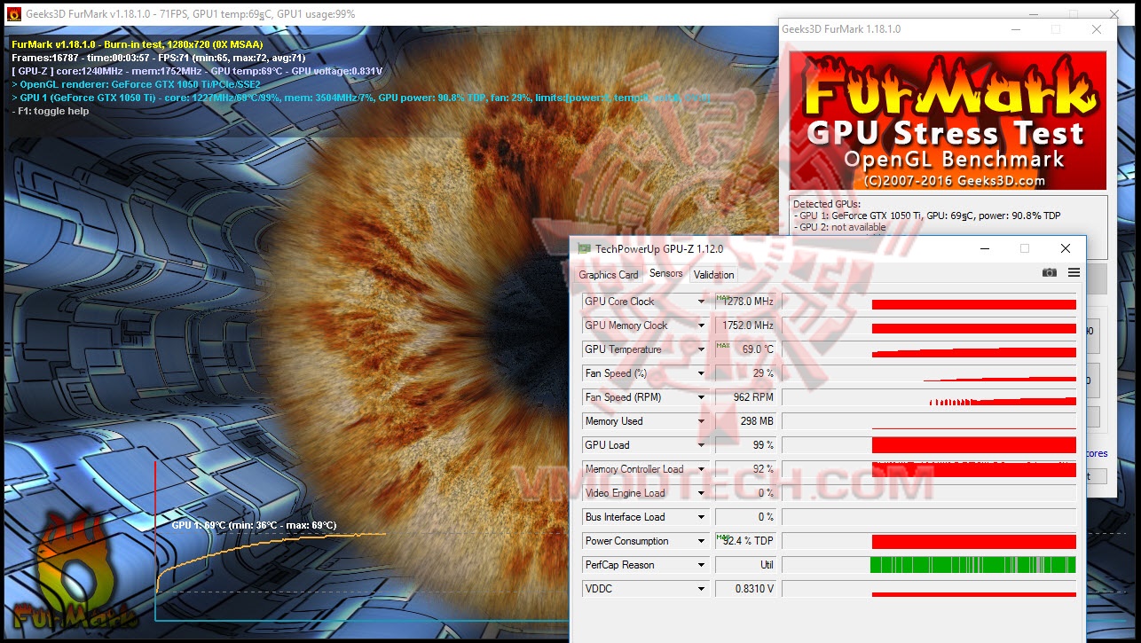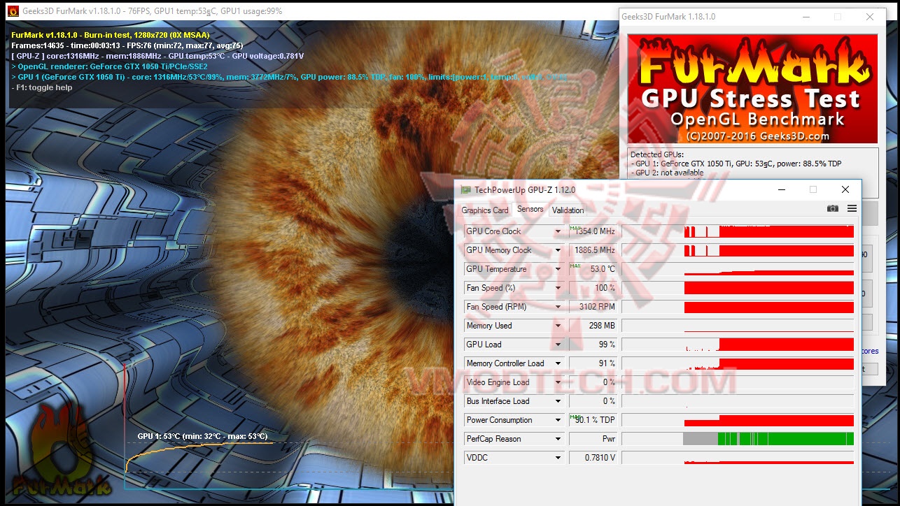 ความร้อนเมื่อทดสอบด้วย Furmark และปรับรอบพัดลมสูงสุดนั้นจะอยู่ที่ไม่เกิน 55 องศาเซลเซียสครับ เย็นใช้ได้