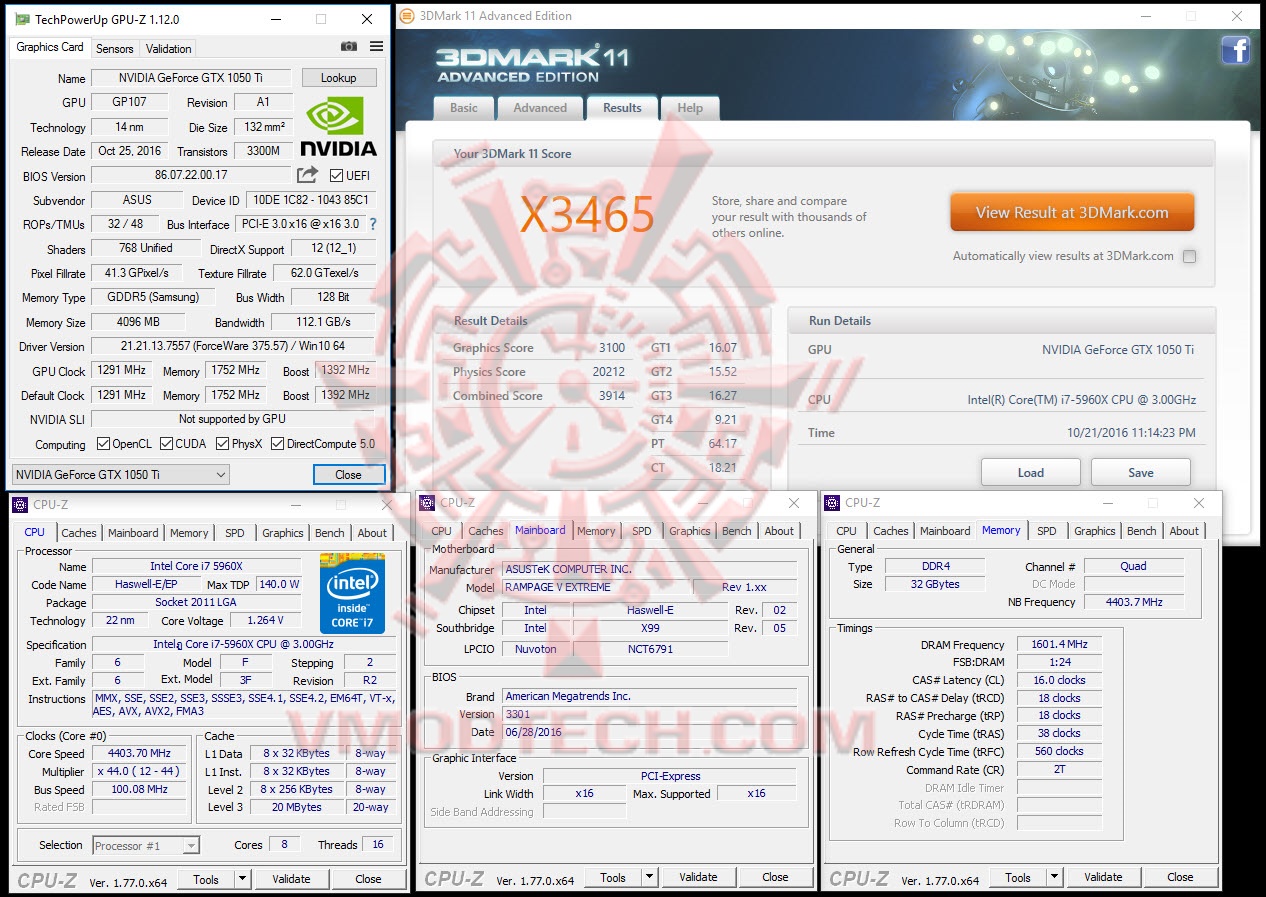 ASUS GeForce GTX 1050 Ti OC @ 1488/1887/1589 MHz Core/Mem/Boost