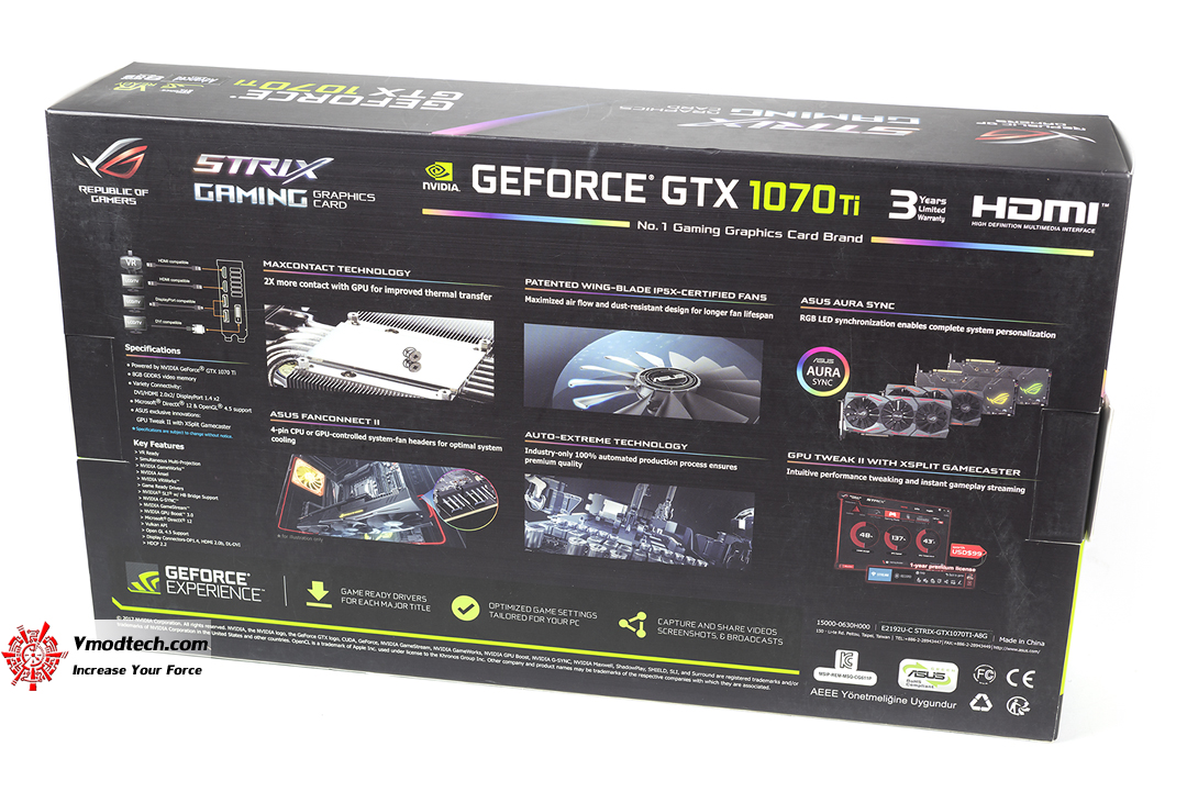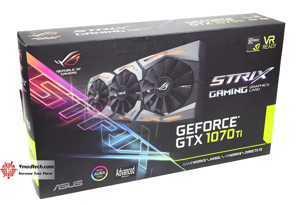 ASUS GeForce GTX 1070 Ti Strix Gaming นั้นมาพร้อมกับแพกเกจที่สวยงามหรูหรามีเอกลักษณ์