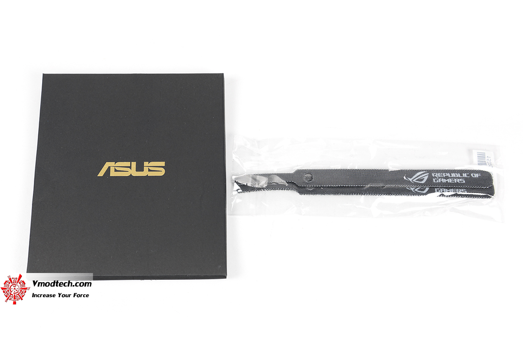 ในแพกเกจจะมีเอกสารสำหรับช่วยในการติดตั้งและสายรัดโลโก้ ROG มาให้ด้วย