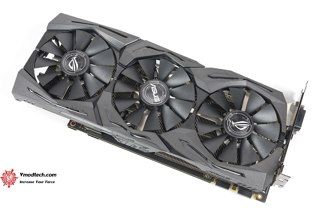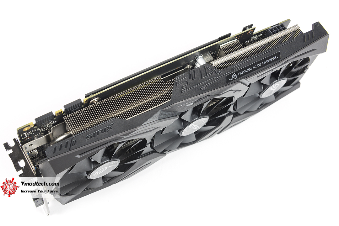หน้าตาของ ASUS GeForce GTX 1070 Ti Strix Gaming นั้นยังคงได้รับการออกแบบฮีทซิ้งระบายความร้อนให้เหมือนกับกราฟฟิกการ์ดในซีรีย์ Strix