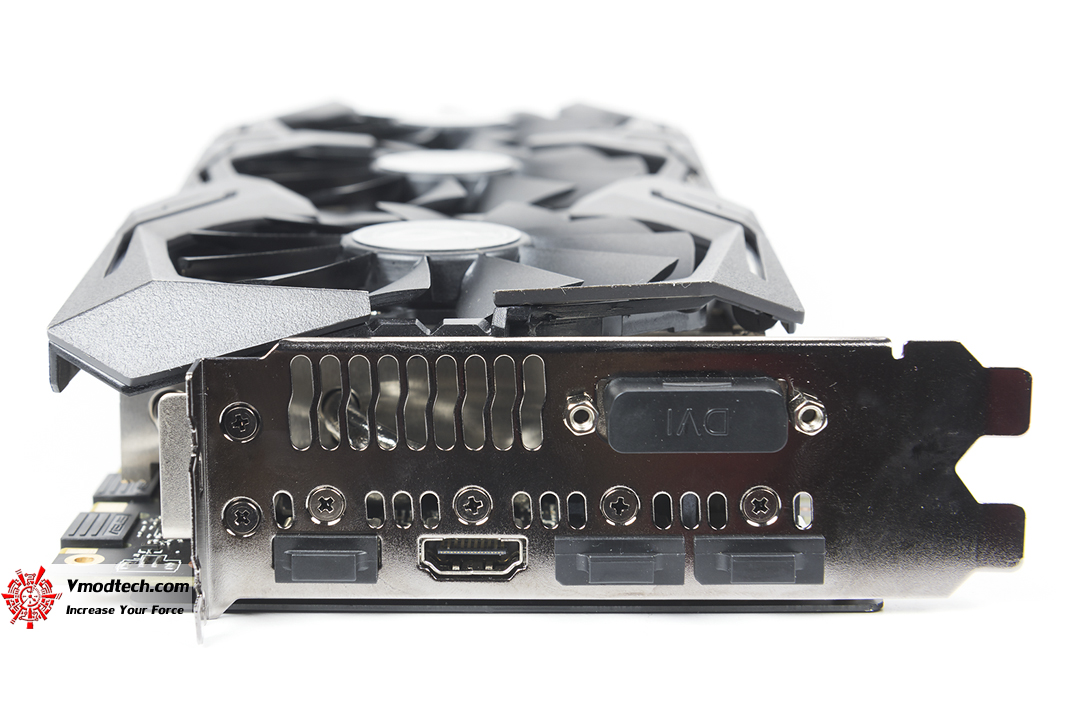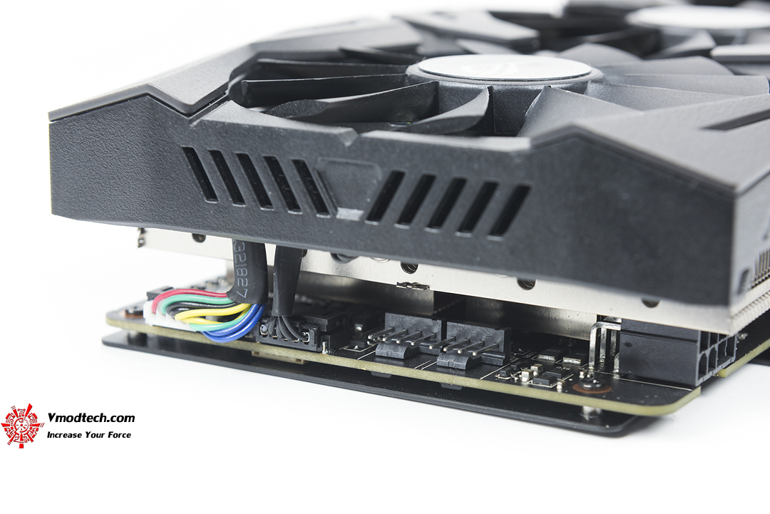ด้านท้ายการ์ดจะมีช่องเชื่อมต่อกับพัดลมของระบบที่จะช่วยยกระดับการระบายความร้อนให้สอดคล้องกัน