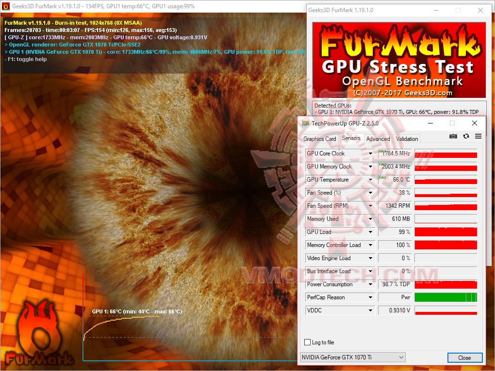 ความร้อนนั้นสูงสุดอยู่ที่ไม่เกิน 66 องศาเซลเซียสโดยที่ ที่รอบพัดลมทำงานตามโพรไฟล์ของการ์ดซึ่งจะอยู่ที่ประมาณ 35% หรือ 1342 รอบต่อนาที เสียงเบามาก