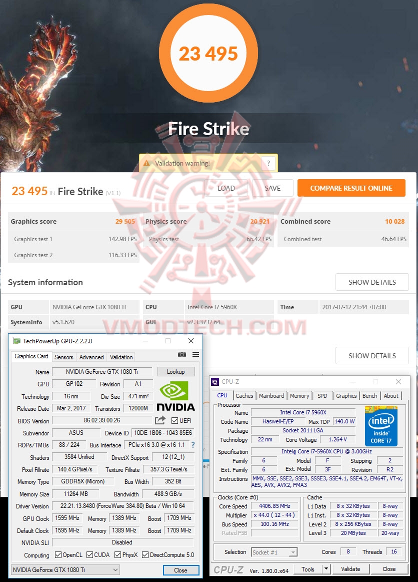 ASUS GeForce GTX 1080 Ti Strix Gaming @ 1595/1389/1709 MHz Core/Mem/Boost