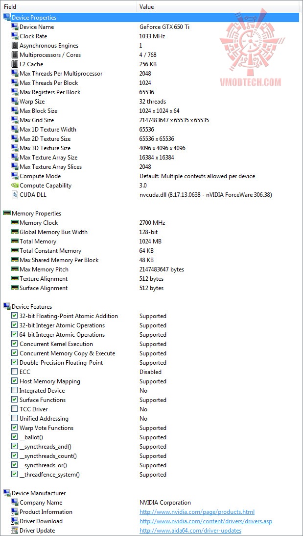 ASUS GeForce GTX 650 Ti DirectCU II TOP Detail from AIDA 64