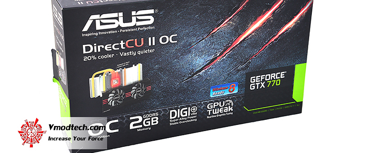 สวัสดีครับ กลับมาพบกับบทความรีวิวกราฟฟิกการ์ดกันอีกครั้งครับ วันนี้เป็นกราฟฟิกการ์ดรุ่นใหญ่จากค่าย ASUS ที่น่าจะเป็นรุ่นที่รอคอยของสาวกและรวมถึงผมผู้ทดสอบเองด้วยเนื่องจากเป็นกราฟฟิกการ์ดที่มีระบบระบายความร้อนที่เป็นเอกลักษณ์ของตัวเองอย่างมาก ครับผมกำลังพูดถึง ASUS GeForce GTX 770 DirectCU II OC ชื่อนี้บ่งบอกถึงความสวยงามและความดุดันได้เป็นอย่างดี มาชมรายละเอียดพร้อมๆกันเลยครับ