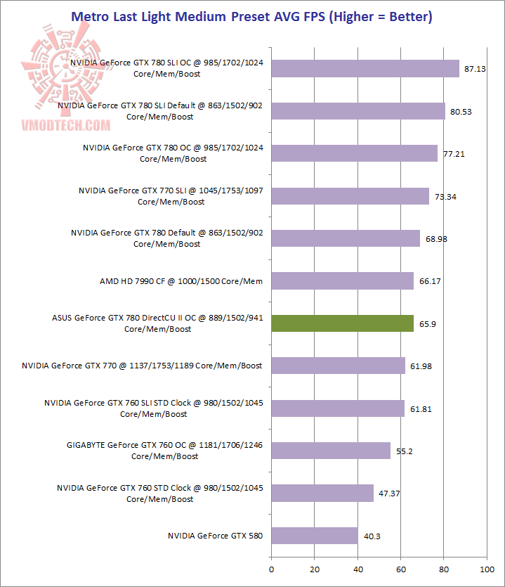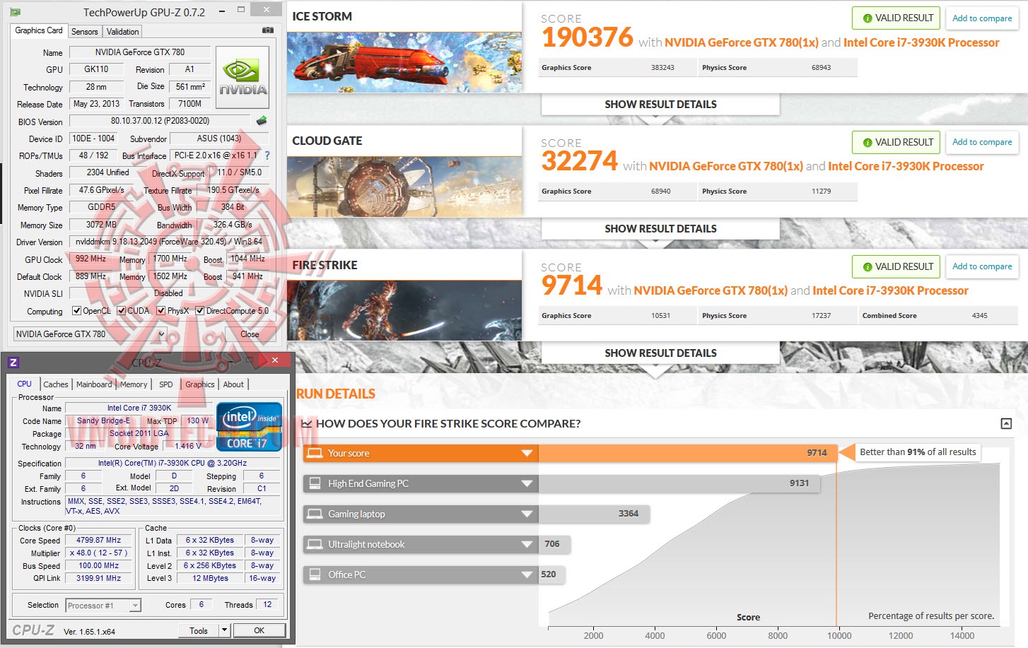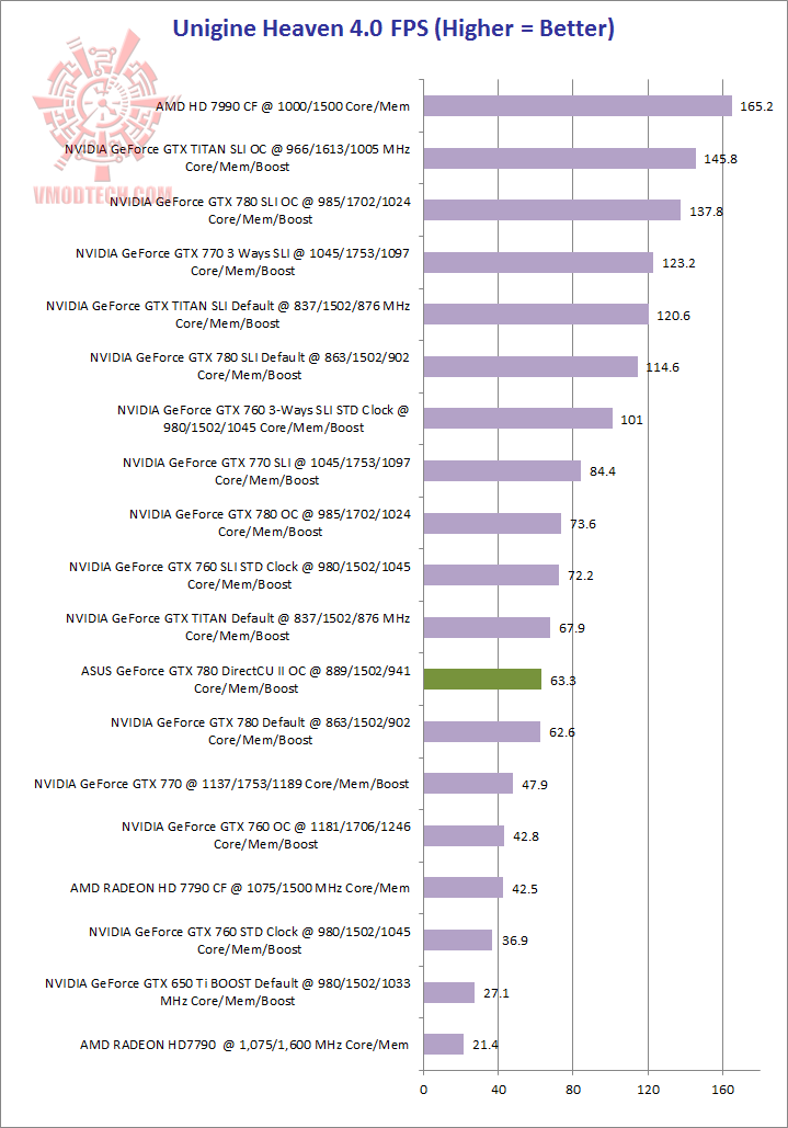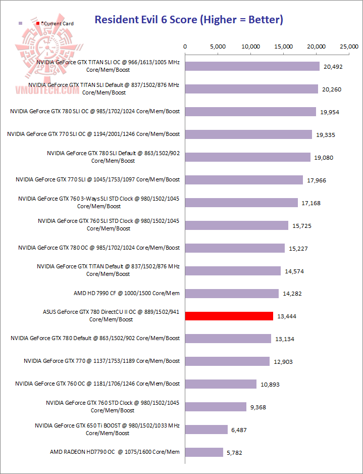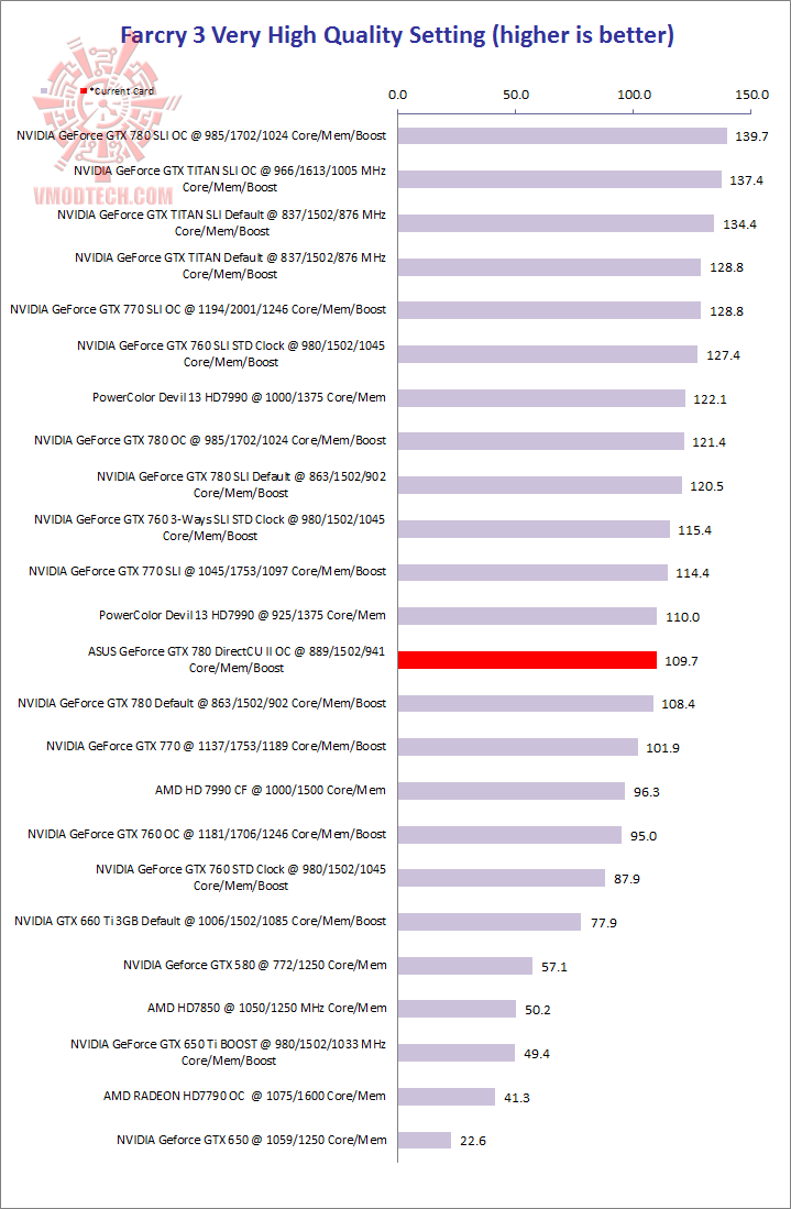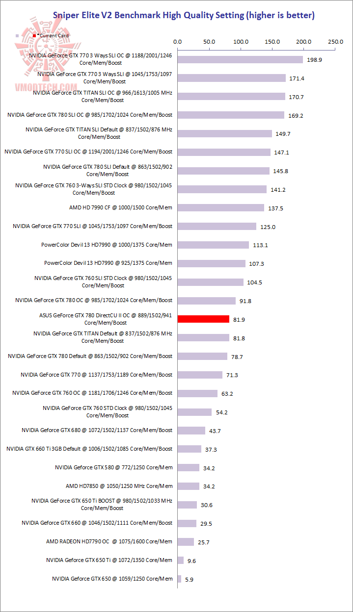 จากตารางจะเห็นความแตกต่างระหว่าง NVIDIA GeForce GTX 780 กับ ASUS GeForce GTX 780 DirectCU II OC ได้เป็นอย่างดีในส่วนของคอร์ที่ทาง ASUS ได้ทำการโอเวอร์คล๊อกมาเล็กน้อย