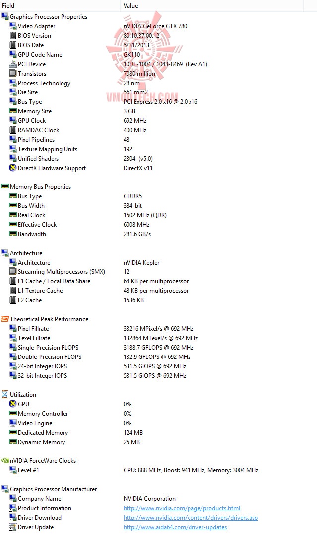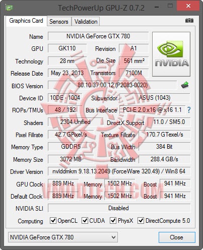 ASUS GeForce GTX 780 DirectCU II OC from GPUZ