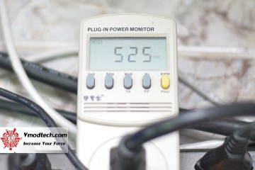 เมื่อทำการโอเวอร์คล๊อกไปแล้ว อัตราการเรียกใช้ไฟจากเต้ารับนั้นก็เพิ่มขึ้นเป็น 525 วัตต์ครับ อืม อันนี้ก็ต้องบอกว่าไม่มากไม่น้อยอีกเช่นเคย