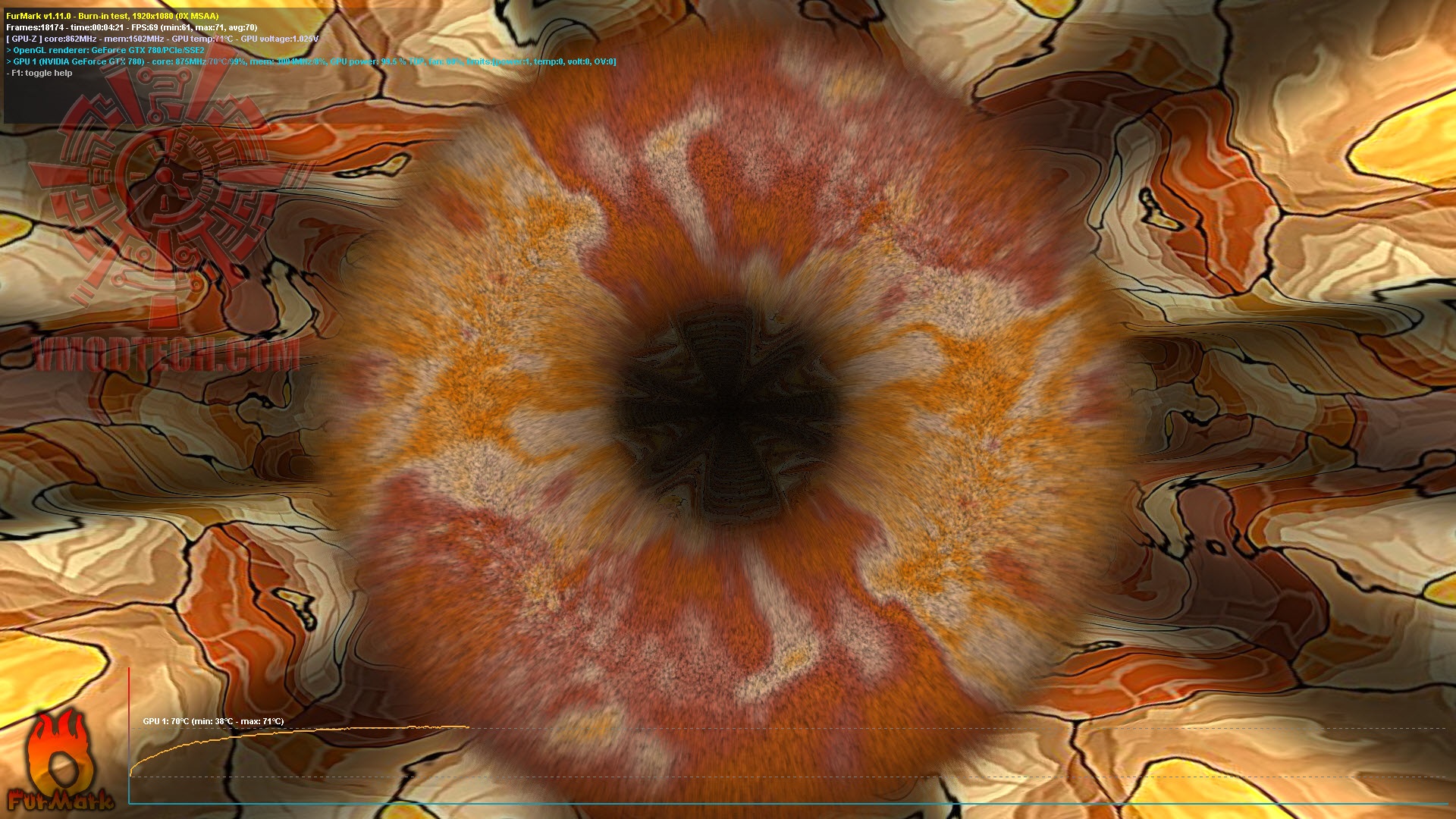 อุณหภูมิของการ์ดขณะ Furmark นั้นจะอยู่ที่ไม่เกิน 71 องศา รอบพัดลมออโต้ที่ เห็นความเปลี่ยนแปลงในระบบความร้อน DirectCU II รุ่นใหม่แล้วนะครับ เย็นและเงียบมาก