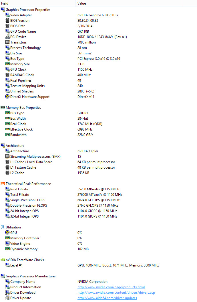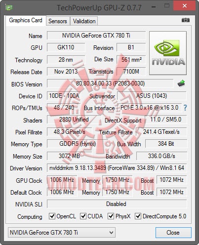 ASUS GeForce GTX 780 Ti MATRIX PLATINUM from GPUZ