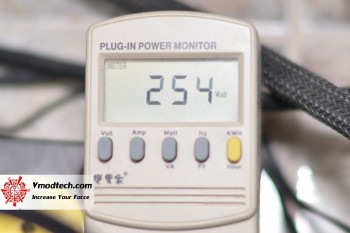 สำหรับ Full Load นั้น กำลังไฟที่กินจากเต้ารับก็สูงสุดที่ค่านี้ครับคือไม่เกิน 500 วัตต์ และในสถานะ Idle นั้นก็กินไฟจากเต้ารับอยู่ 255-260 วัตต์ครับ กินไฟปกติสำหรับการ์ดรุ่นใหญ่แบบนี้