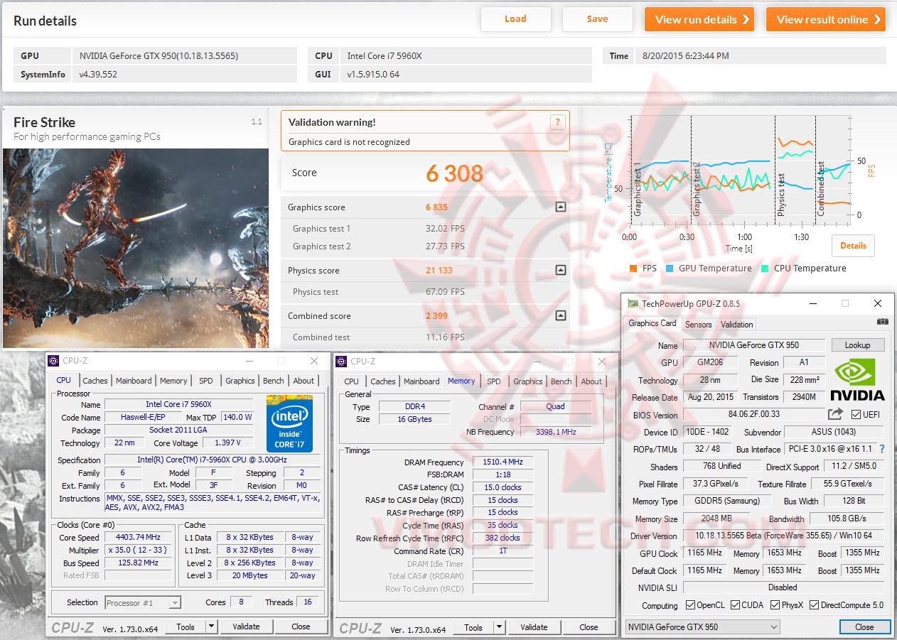 ASUS GeForce GTX 950 STRIX GAMING @ 1165/1653/1355 MHz Core/Mem/Boost